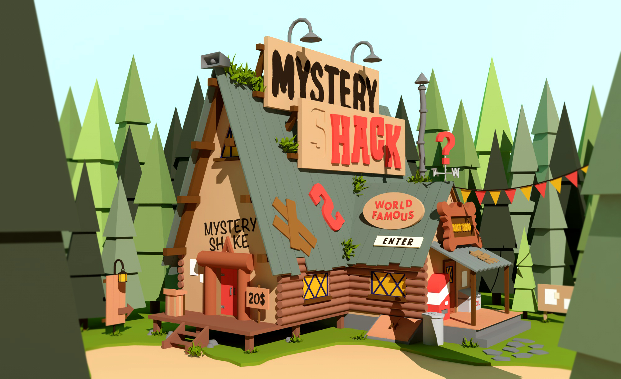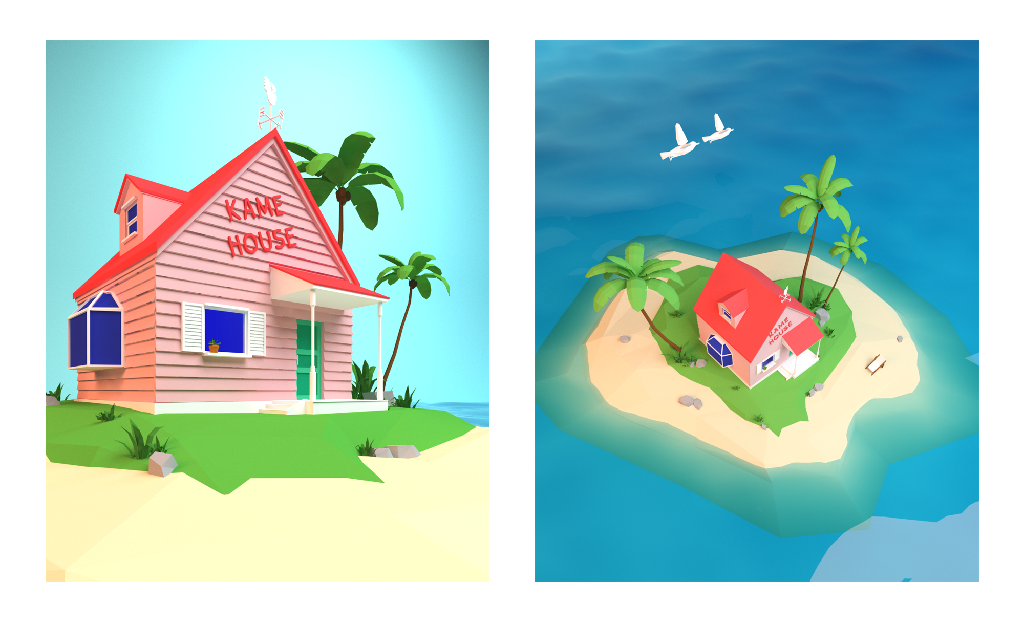 Diseño low poly 3D de casas famosas de series y películas.